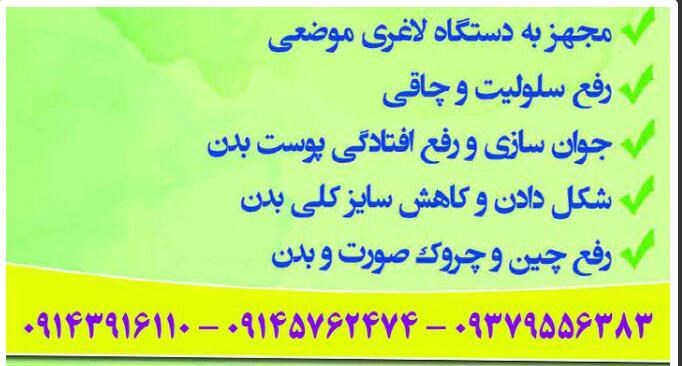 مجهز به دستگاه لاغری موضعی رفع سلولیت چاقی چوان سازی و رفع افتادگی پوست بدن شکل دادن و کاهش سایز کلی بدن رفع چین و چروک صورت و بدن دارای تاییده اتحادیه اروپا مدیکال و تکنولوژی FDA آمریکا شماره نظام پزشکی :ت ـــــ4314